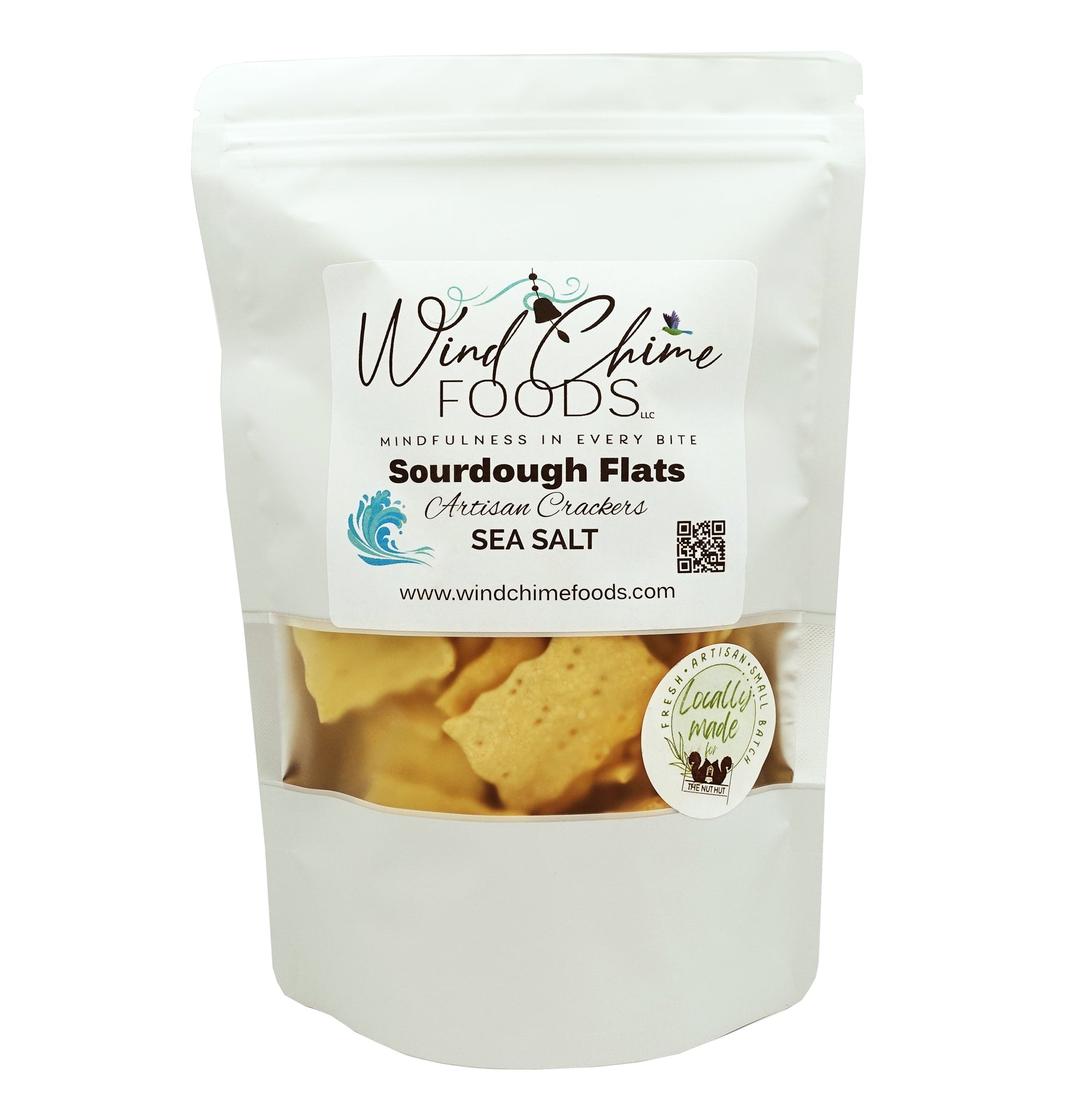 Wind Chime Foods' Sea Salt Flats feature a clean, simple flavor. They pair perfectly with both sweet and savory dishes. Transform any appetizer with these distinctive sourdough crackers. Caution: they’re delightfully addictive straight from the bag!