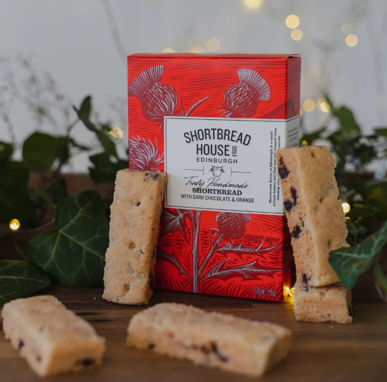Dark chocolate and orange shortbread fingers, sealed for freshness. The bright, citrusy zing of orange paired with rich, velvety dark chocolate creates a perfect harmony of flavors in every bite. A thoughtful gift for any foodie, these Scottish cookies are ideal for birthdays, Christmas, or any special occasion.