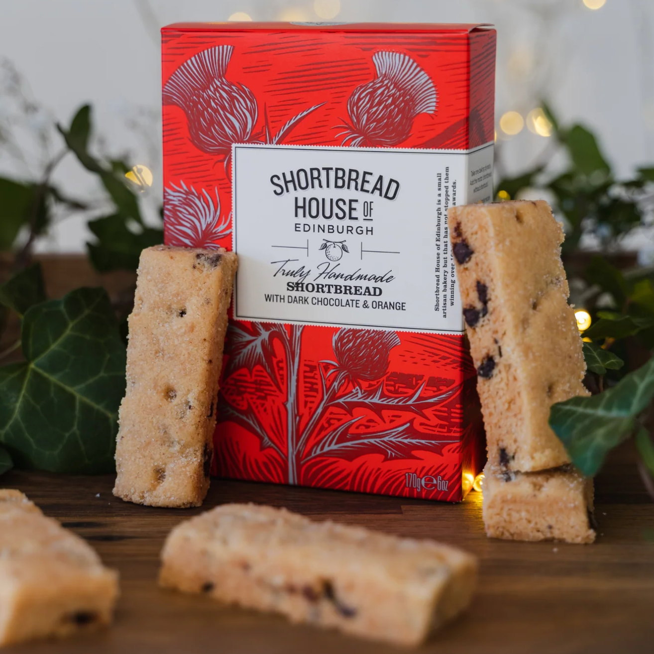 Dark chocolate and orange shortbread fingers, sealed for freshness. The bright, citrusy zing of orange paired with rich, velvety dark chocolate creates a perfect harmony of flavors in every bite. A thoughtful gift for any foodie, these Scottish cookies are ideal for birthdays, Christmas, or any special occasion.